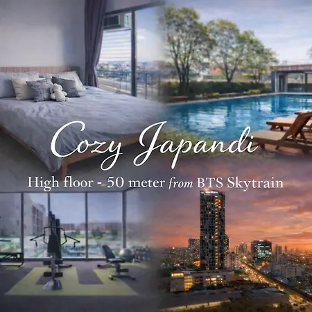 Doté d'une piscine, l'appartement Cozy Japandi Stay On Sukhumvit Bangkok est situé à environ 5 minutes de marche du supermarché Tesco Lotus. La résidence offre un parking privé sur place et tout le confort moderne comme un Wi-Fi.